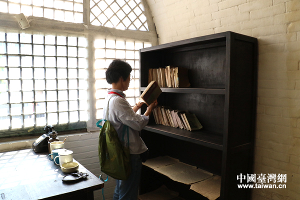 參訪者閱讀瓦家堡舊址書籍(中國(guó)臺(tái)灣網(wǎng) 劉璐璐 攝)