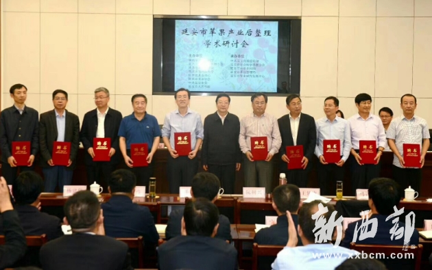 延安市蘋果產(chǎn)業(yè)后整理學(xué)術(shù)研討會9月24日在延安召開。陜西省社會科學(xué)院黨組書記、院長司曉宏主持研討會。延安市委副書記、市長薛占海介紹延安市蘋果產(chǎn)業(yè)后整理情況。陜西省農(nóng)業(yè)農(nóng)村廳黨組成員、省果業(yè)中心黨委書記高武斌致辭,省社科聯(lián)黨組成員、副主席高紅霞,延安市委副書記、政法委書記嚴(yán)漢平,副市長張強(qiáng)參加,市委常委、宣傳部部長柯昌萬出席會議。知名專家學(xué)者姜中武、韓振海、馬鋒旺、楊建偉、王建康、張鴻、阮樹興、邵剛等應(yīng)邀參加研討。會上,薛占海為市外高端智庫特聘專家頒發(fā)了證書,各位專家學(xué)者圍繞蘋果產(chǎn)業(yè)發(fā)展進(jìn)行了交流研討。