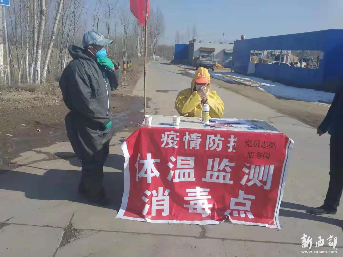 孟家灣鄉(xiāng)黨委組織各黨支部通過微信、村級大喇叭、張貼標語等方式大力宣傳疫情防控知識,在全鄉(xiāng)各村進出路口設(shè)立檢測點,每個檢測點設(shè)置黨員志愿服務(wù)崗,組織黨員登記進出人員信息、檢測體溫、進行車輛消毒。