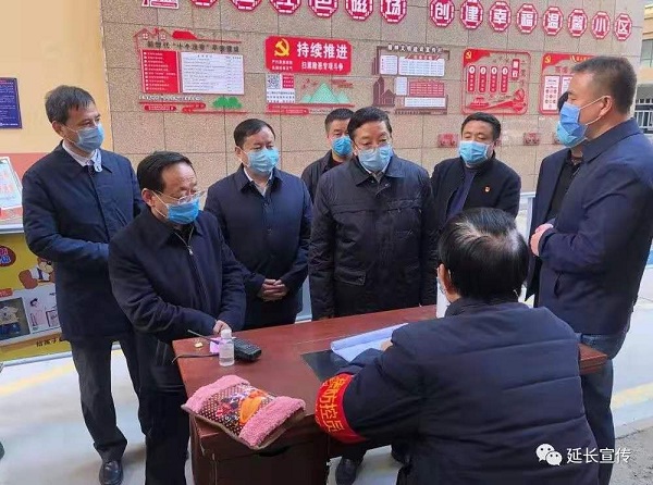 在延長(zhǎng)縣疾控中心和集中隔離點(diǎn),薛占海仔細(xì)詢問疫情防控物資儲(chǔ)備和一線醫(yī)務(wù)人員防護(hù)等情況。