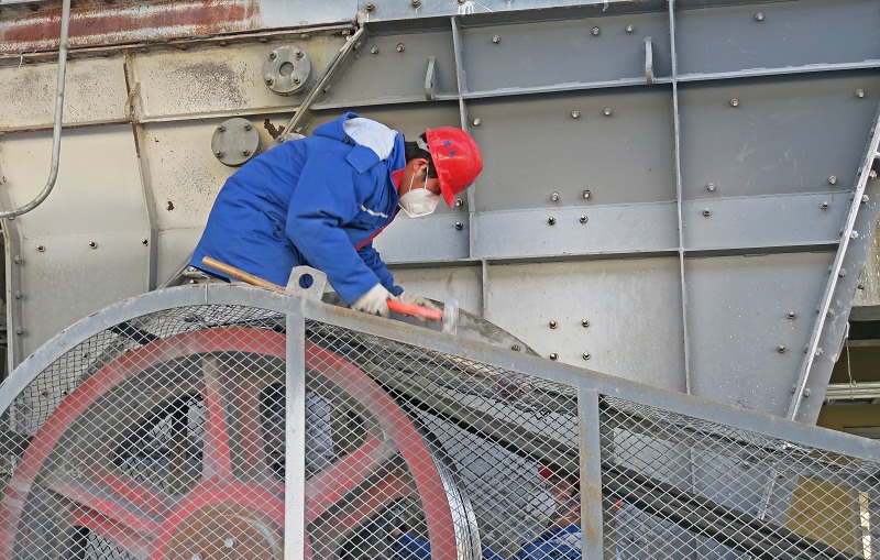 2月18日,錦界工業(yè)園區(qū)一環(huán)保公司員工在進行設備檢查。