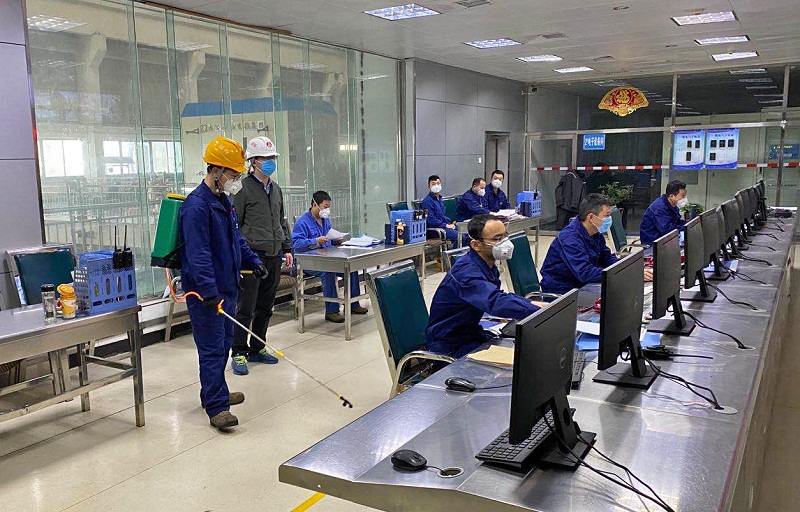 2月20日,檸條塔工業(yè)園區(qū)一家發(fā)電公司工作人員正在進行殺菌消毒。