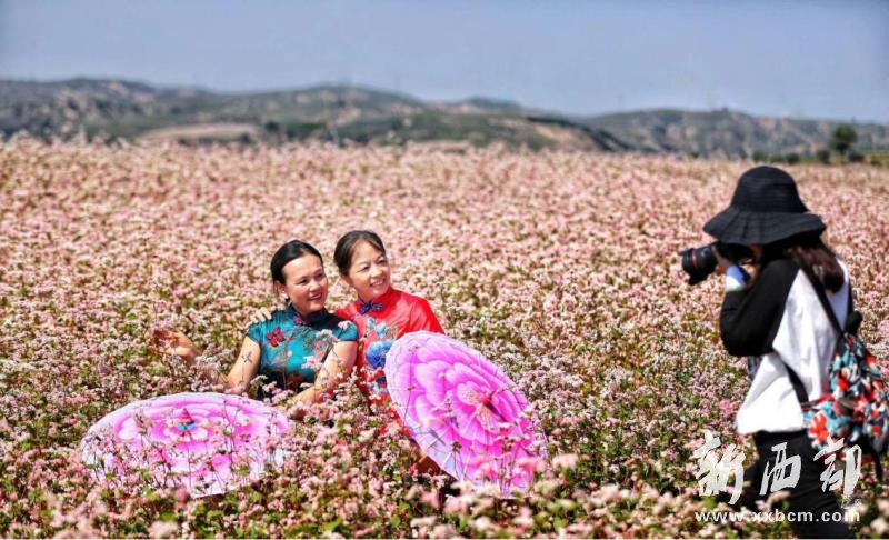 蕎麥?zhǔn)欠鄯繙洗宓奶赜修r(nóng)作物,為了在傳統(tǒng)種植領(lǐng)域探索發(fā)掘出特色致富產(chǎn)業(yè),趙五家灣便民服務(wù)中心借助產(chǎn)業(yè)扶貧政策支持,在尊重農(nóng)民意愿的前提下,積極聯(lián)系上級部門,爭取資金,引導(dǎo)村集體和種植大戶規(guī)?;N植了紅花蕎麥,大力培育千畝蕎麥種植特色產(chǎn)業(yè),形成粉房溝村蕎麥特色品牌。目前,該村累計種植蕎麥3330余畝,產(chǎn)出666噸,收益432.9萬元。與此同時,粉房溝“紅花蕎麥旅游文化節(jié)”也在府谷縣域內(nèi)形成特色旅游品牌。2016年至今,粉房溝村已連續(xù)舉辦三屆以“暢游蕎麥花海,助力脫貧攻堅”為主題的“紅花蕎麥旅游文化節(jié)”,吸引了數(shù)萬游客觀花賞景,累計帶動農(nóng)民農(nóng)產(chǎn)品銷售收入20 余萬元。