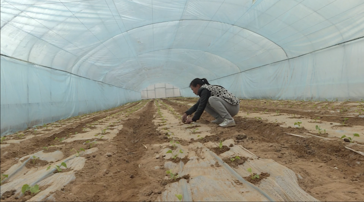 正在雙膜拱棚里干活的貧困戶荷葉,一邊給西瓜幼苗培土,一邊笑呵呵地告訴記者:“我和丈夫在這里打工,每人每天100元,兩個(gè)人就是200元,這樣就大大增加了我家的收入,下一步還要給我們?nèi)牍?。照這樣干下去,好日子不遠(yuǎn)了!”