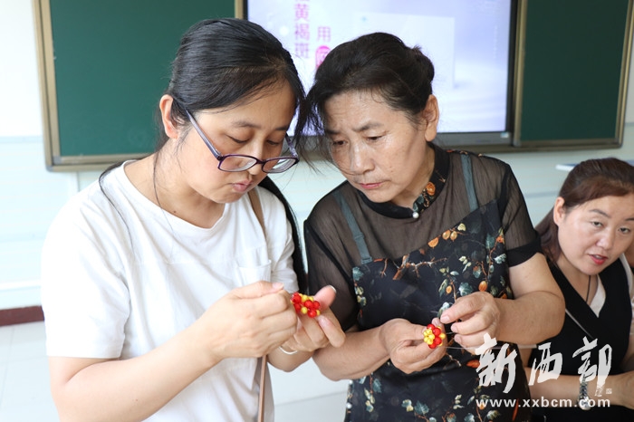 “以前老覺得剪紙、堆繡和編織只是一門愛好,沒想到它可以是一項小產(chǎn)業(yè)”“我們要通過婦聯(lián)給我們搭建的平臺來創(chuàng)造價值”……結(jié)業(yè)儀式上,學員們分享著激動的心情,并相互交流著串珠、印染、刺繡的學習心得。一件件串珠藝術(shù)品,一幅幅剪紙印染作品,展示著學員們的學習成果,表現(xiàn)了學員們的創(chuàng)意構(gòu)思。