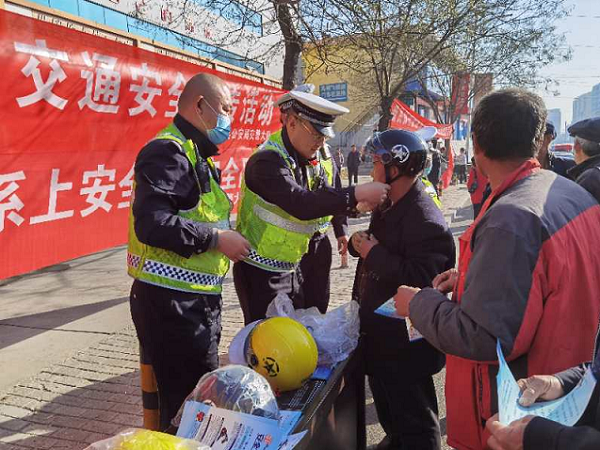 為了更好地把道路交通事故預(yù)防“減量控大”工作落到實處,中隊民警還向部分摩托車駕駛?cè)嗣赓M發(fā)放安全頭盔,并現(xiàn)場教授佩戴安全頭盔的正確方式,告誡摩托車駕駛?cè)顺鲂幸欢ㄒ宕黝^盔,同時要帶動身邊的親戚朋友,讓更多的人樹立起交通安全意識,真正做到“崇德守法 平安伴行”。