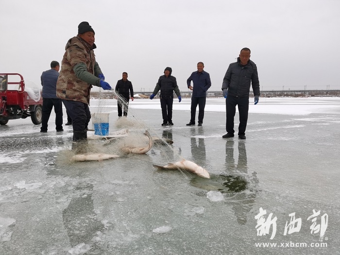 “咦——,這魚大了!”捕魚人郝雙林隨手抓起一條十余斤的大鯉魚,說:“今年的魚長得大了,剛撈的不少魚都有十來斤了,估計到臨過年時,我們正式冬捕時能捕到更大的?!比庋劭梢姷呢S收預(yù)判,讓捕魚人群不時傳出陣陣爽朗的笑聲。