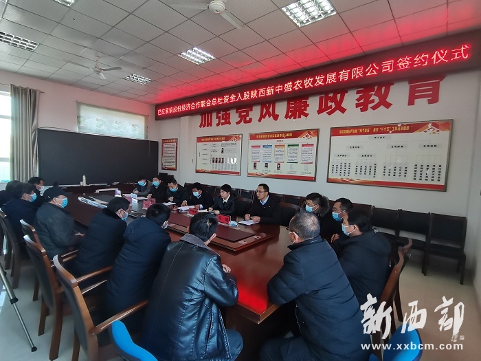 高揚(yáng)揚(yáng)報(bào)道 12月31日,榆陽(yáng)區(qū)巴拉素鎮(zhèn)舉行巴拉素經(jīng)濟(jì)合作總社資金入股陜西新中盛農(nóng)牧發(fā)展有限公司簽約儀式。該鎮(zhèn)11個(gè)經(jīng)濟(jì)合作分社,參與入股巴拉素鎮(zhèn)討討灘村萬(wàn)只規(guī)模化湖羊養(yǎng)殖基地,入股期限為5年,每年將享受固定分紅。