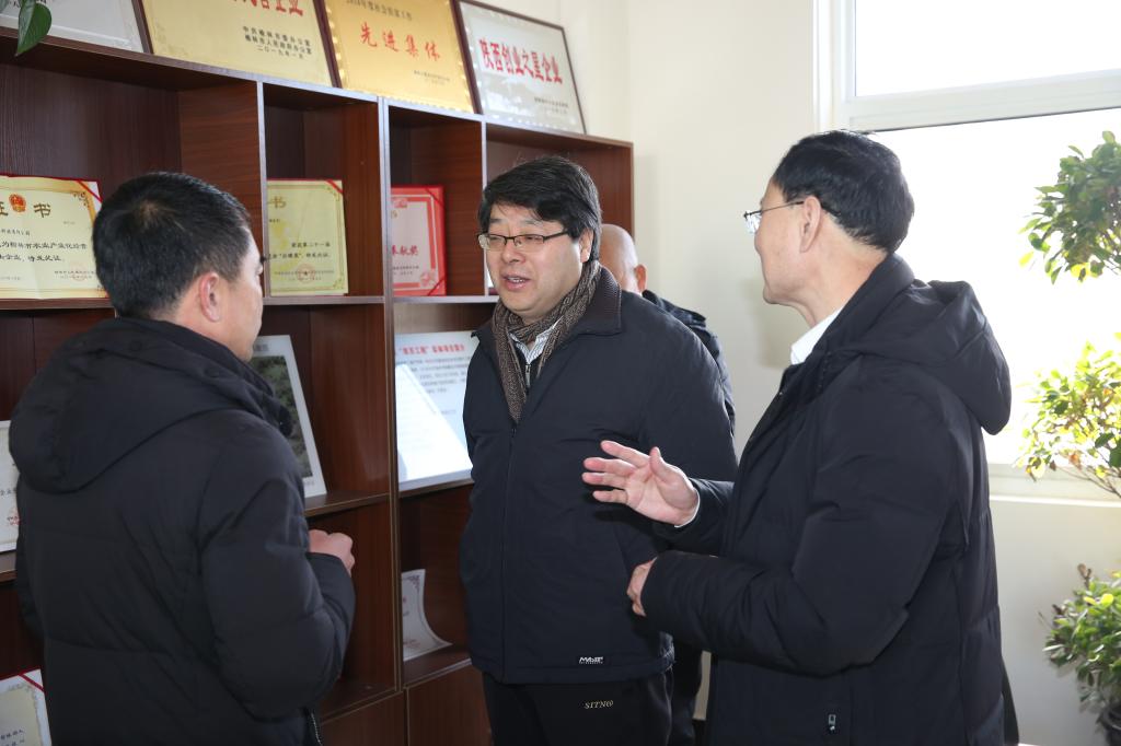 上午9:00,張新柱一行到綏德縣榆林學院“雙百工程”實體項目服務(wù)企業(yè)——強盛農(nóng)業(yè)科技有限公司,看望慰問了??萍继嘏蓡T艾海艦、賀學林兩位教授,并調(diào)研了特派員服務(wù)企業(yè)和企業(yè)服務(wù)地方情況。