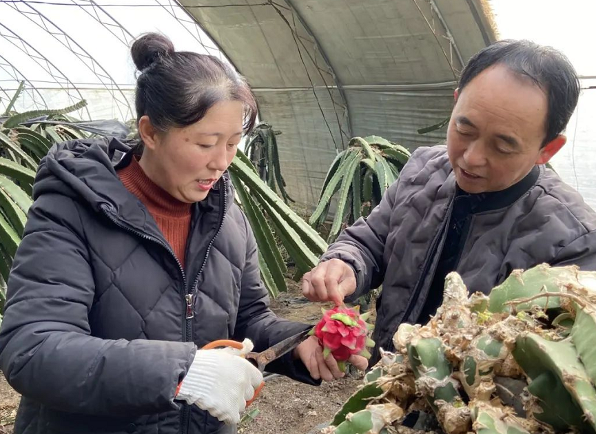 在魚河鎮(zhèn)鄭家溝村沙地火龍果種植基地,記者看到,一株株形似仙人掌枝條狀的火龍果整齊的掛在架子上,新一茬的火龍果已經(jīng)開始結(jié)果。種植戶王二財和妻子正忙著查看果實的生長情況,為春節(jié)假期采摘做準(zhǔn)備。