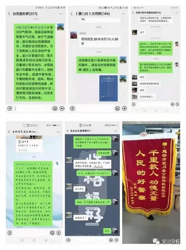 為了能夠零距離訪民意、察民情、解民憂,秋林派出所結(jié)合轄區(qū)實際,利用微信社交軟件,建立了21個微信警務(wù)工作站,由21名局機關(guān)“一村一警”民警和所內(nèi)社區(qū)民警負責各自“責任村”,定期公開工作信息、宣傳安全防范等信息。同時群眾也通過該平臺向民警咨詢相關(guān)的業(yè)務(wù)和法律法規(guī),報備流動人員情況等等,讓群眾24小時聯(lián)系到轄區(qū)民警。2020年6月中旬,一老人通過派出所微信警務(wù)站尋求幫助,民警根據(jù)老人微信小程序中的保險應(yīng)用,聯(lián)系到保險公司,追回了老人誤繳納的800元保險費,老人對秋林派出所高效、熱情周到地服務(wù)態(tài)度表示感謝與滿意。