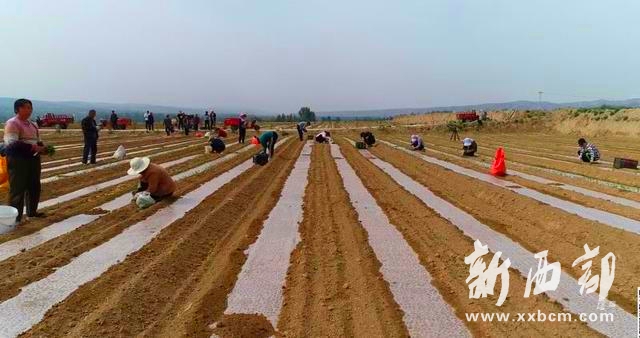 現(xiàn)在雖然已經(jīng)進(jìn)入初夏,可是對(duì)于府谷縣來(lái)說(shuō)還是處于春耕時(shí)節(jié)。走進(jìn)黃甫鎮(zhèn)段寨村給人的印象是忙,村民忙、干部忙,只見(jiàn)打好的攏子上有的人在覆膜,有的人在插苗,有的人在澆水。村支部書(shū)記段宏園告訴記者,他們?cè)灾驳氖且环N叫做“甜葉菊”的經(jīng)濟(jì)作物,以前從里種植土豆、花生等傳統(tǒng)農(nóng)作物,不但品種單一,而且沒(méi)有競(jìng)爭(zhēng)優(yōu)勢(shì),銷(xiāo)路難。今年是首次引進(jìn)甜葉菊。