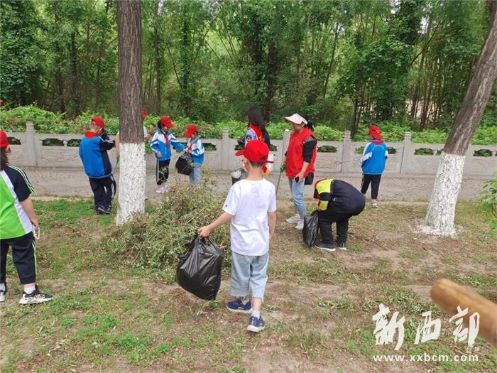 在航宇路社區(qū)幸福禾苗班也同樣進行著一場暖心的慰問活動?!半p報到”單位榆林市市場監(jiān)督管理局的黨員志愿者們給孩子們帶來了書包、文具盒、鉛筆及卷筆刀等學習用品,并和孩子們一起開展一次保護環(huán)境衛(wèi)生實踐活動,讓孩子們這個“六一”過的開心而有意義。在河濱公園活動現(xiàn)場,孩子們和志愿者一起沿河畔清掃垃圾和砂石;有的刮除電桿、墻面的“牛皮癬”廣告;有的在綠化帶內揀白色垃圾、煙頭,遇到難清理的垃圾,干脆放下工具,直接用手撕扯;有的對堆積物、雜草及各種垃圾廢棄物進行徹底清理。經(jīng)過小小志愿者的辛勤努力,河濱公園沿河畔的衛(wèi)生被打掃干干凈凈。