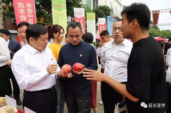欣賞過(guò)精彩的文藝演出,曹林虎帶著主播一起品嘗地道的延長(zhǎng)美食和鮮美的有機(jī)農(nóng)特產(chǎn)品,欣賞精美的民俗文化作品和文創(chuàng)產(chǎn)品,領(lǐng)略延長(zhǎng)縣“石油故里”“瓜果之鄉(xiāng)”自然風(fēng)光。現(xiàn)場(chǎng)展臺(tái)分為瓜果蔬菜區(qū)、民俗文創(chuàng)區(qū)和美酒美食區(qū)。
