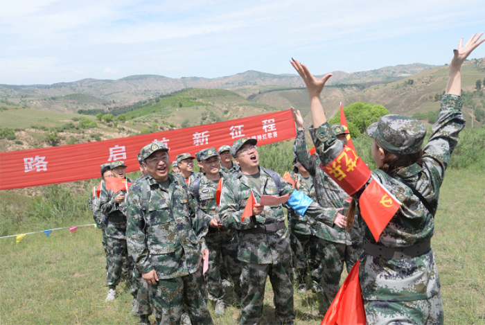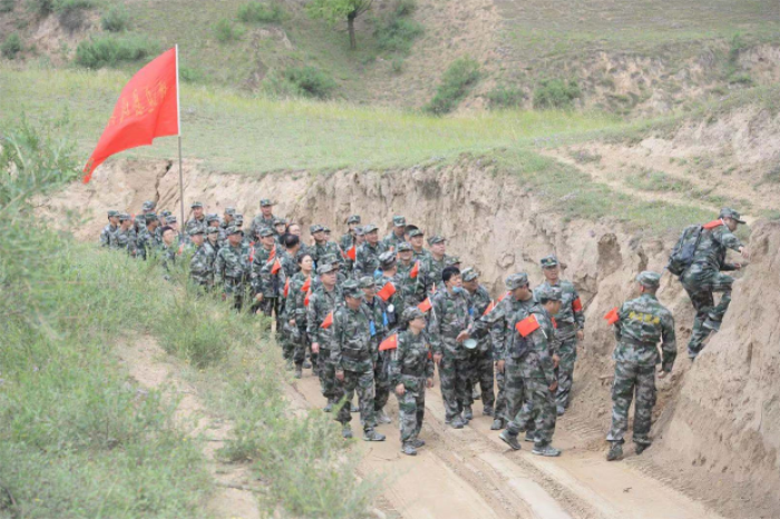 活動中,全體縣級領導干部沿著天賜灣壩、趙臺村、小河村、孤沙灣、鋪子洼等革命先烈走過的崎嶇道路,重走共產(chǎn)黨人曾經(jīng)經(jīng)歷的苦難與輝煌,重溫歷久彌新的紅色記憶。中途,全隊人員分別進行越野訓練、雙方對抗和野外炊飲項目。小河村孤沙灣越野插旗比賽中現(xiàn)場吶喊聲、鼓勁聲,讓全體官兵士氣高漲;紅歌大比拼現(xiàn)場,《沒有共產(chǎn)黨就沒有新中國》《東方紅》《團結就是力量》等激情滿懷的歌聲在山谷久久回蕩;徒步途中舉行的拔河比賽氣氛熱烈,隨著裁判長口令響起,隊員們個個卯足了勁,齊心協(xié)力,進行了一場體力、耐力和毅力的較量,比賽場面激烈萬分,難分勝負,傳遞著全體黨員干部敢于拼搏,奮勇向前的精神力量。小米稀飯、玉米棒、窩窩頭、鄉(xiāng)村野菜是全體人員的午飯,大家在吃憶苦思甜飯的同時,體悟著艱苦卓絕的革命歲月,進而激發(fā)出對當前工作的干勁和熱情。