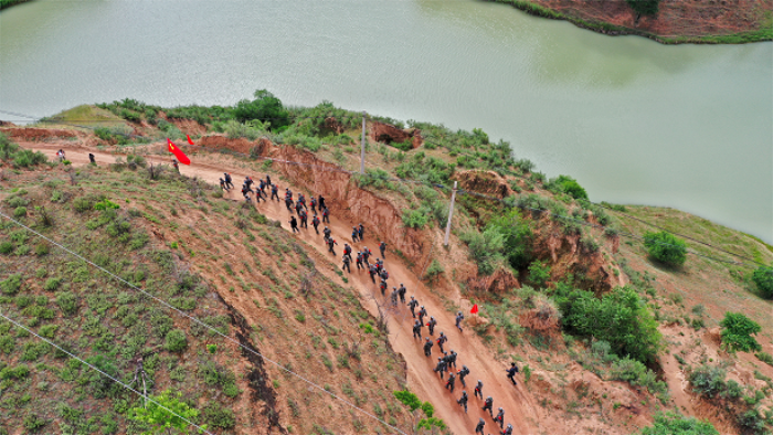 今年是中國共產(chǎn)黨成立100周年,也是毛澤東帶領中共中央轉戰(zhàn)陜北從天賜灣轉移至小河村74周年。如今,當黨員干部們再一次走進小河,歷史的回響仍不絕于耳。1947年7月,毛澤東等老一輩無產(chǎn)階級革命家在小河會議舊址召開了重要的小河會議,會議確定解放戰(zhàn)爭從戰(zhàn)略防御轉為戰(zhàn)略進攻,為全國形成“中央突破,兩翼牽制,三軍挺進,互為犄角”的戰(zhàn)略進攻態(tài)勢創(chuàng)造了有利條件。在黨中央轉戰(zhàn)陜北的革命道路上,一代共產(chǎn)黨人矢志不渝的奮斗挽救了一個民族。一代代共產(chǎn)黨人的傳承,又將在這條紅色道路上賡續(xù)出新的故事?!叭w縣級領導和民兵應急連部分官兵重走革命路,重溫紅色記憶,弘揚革命精神,磨煉了我們共產(chǎn)黨人和人民軍隊鋼鐵般的意志,有效激勵了我們啟航新征程、奮斗‘十四五’,加快建設‘三區(qū)三地一中心’,奮力譜寫靖邊新時代追趕超越新篇章?!本高吙h委書記賀湘如說。