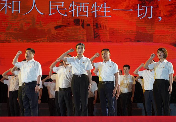 “我志愿加入中國共產(chǎn)黨,擁護(hù)黨的綱領(lǐng),遵守黨的章程,履行黨員義務(wù)……”在晚會(huì)現(xiàn)場,來自全區(qū)各機(jī)關(guān)的35名新發(fā)展的黨員面對鮮紅的黨旗,舉起右手,莊嚴(yán)宣誓“為共產(chǎn)主義奮斗終身”!