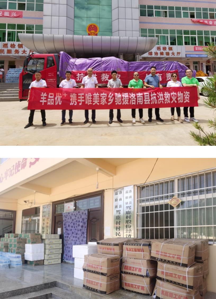 洪水無情,人間有愛。在得知洛南縣遭遇洪水襲擊后,7月27日,人民日報(bào)人民周刊網(wǎng)事業(yè)部主任蘇琳杰攜陜西羊品優(yōu)控股有限公司,唯美家鄉(xiāng)科技有限公司董事長杜春祥一行為洛南縣捐贈總價(jià)值45萬元的救災(zāi)物資。