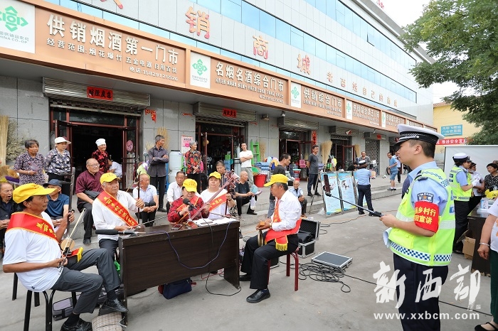 為進(jìn)一步提升農(nóng)村地區(qū)群眾交通安全意識、文明意識、法治意識,維護(hù)農(nóng)村交通安全形勢平穩(wěn)。7月28日,府谷公安交警利用農(nóng)村趕集人多車多的有利時機(jī),借力“陜北說書”藝人,走進(jìn)新民鎮(zhèn)集市開展“美麗鄉(xiāng)村行”交通安全巡回活動,以別具一格的宣傳方式,為當(dāng)?shù)厝罕姵尸F(xiàn)了豐富多彩的“交通安全文藝盛宴”。