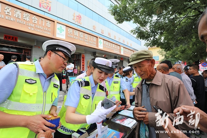 說書藝人用詼諧幽默、帶有地方濃郁特色的表演方式將安全駕駛常識、安全出行知識、交通事故案例編在唱詞里,把交通事故造成的家庭悲劇說唱給現(xiàn)場每一位群眾,讓大家進(jìn)一步認(rèn)識交通安全的重要性和遵守交通法律法規(guī)的重要意義,這種喜聞樂見的形式吸引了眾多群眾駐足觀看。民警用府谷交警官方抖音對現(xiàn)場演出進(jìn)行了直播,吸引了眾多粉絲的圍觀,擴(kuò)大了交通安全宣傳教育受眾面。