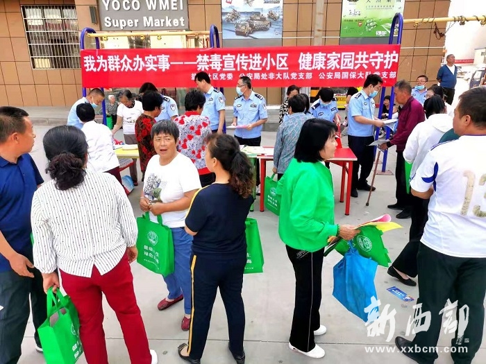 活動中,工作人員為小區(qū)的居民發(fā)放禁毒宣傳單,禁毒教育手冊、宣傳折頁等,并向他們講解毒品的種類、吸食毒品的危害以及如何預防毒品侵害等知識。同時提醒廣大群眾在日常生活中要提高防范意識,謹慎交友,學會保護自己、家人和朋友,堅決做到不碰毒、不沾毒,并鼓勵群眾發(fā)現(xiàn)涉毒違法行為要及時舉報。