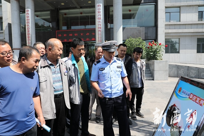 為進(jìn)一步加強(qiáng)秋季道路交通安全管理,有效提高企業(yè)員工的交通安全意識(shí)。9月2日,府谷縣公安局交警大隊(duì)宣傳民警走進(jìn)新民鎮(zhèn)京府煤化公司開展交通安全宣講活動(dòng)。