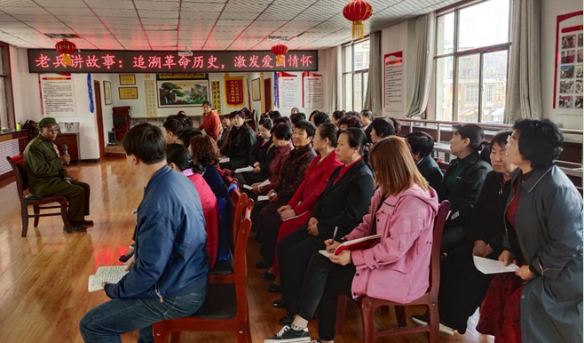 縣城市社區(qū)服務(wù)中心棗樹灣社區(qū)老兵馬增俊給群眾分享黨史故事