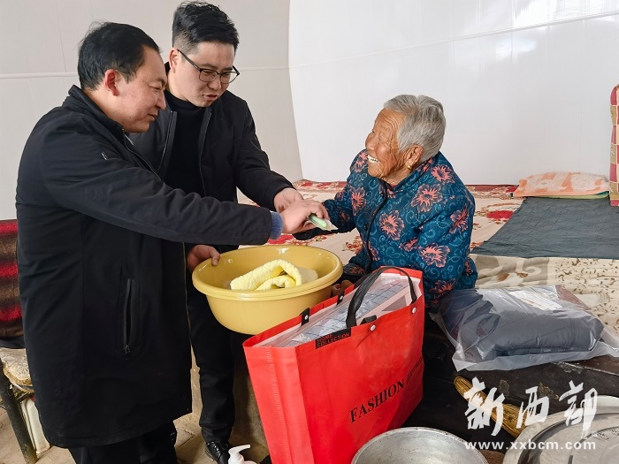新西部網(wǎng)訊(通訊員 陳姣姣)12月15日,榆林市橫山區(qū)石窯溝辦事處常家元村駐村工作隊干部辛小東一行與村支部書記張清國共同將橫山區(qū)民政局派發(fā)給該村脫貧重點監(jiān)測戶的“暖冬大禮包”挨家逐戶送到鄉(xiāng)親們的手中,給他們送上入冬以來最溫暖的慰問。