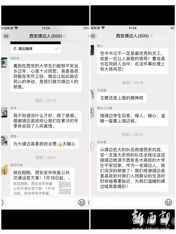 一位名叫“淡如水”的網(wǎng)友留言:“看到在西安的大學生們能夠平安返鄉(xiāng)過年,心里十分欣慰......做出如此貼近民心的舉動,是我們作為靖邊人的驕傲?!?/p>