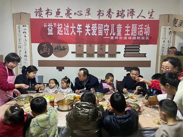 楊園則社區(qū)包餃子過大年關(guān)愛留守兒童