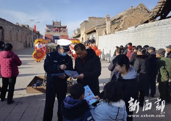 2月16日,恰逢府谷縣新民鎮(zhèn)新民村廟會(huì)之際,新民交警中隊(duì)民警走進(jìn)廟會(huì)現(xiàn)場(chǎng)開(kāi)展交通安全宣傳活動(dòng)。