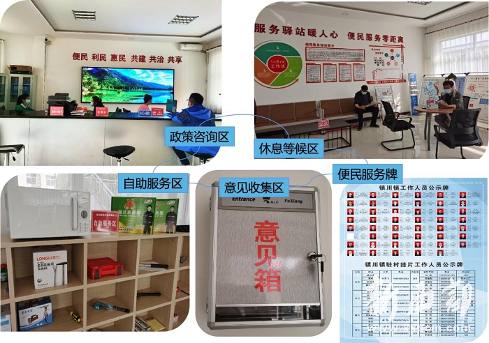 為不斷提升鄉(xiāng)村治理服務(wù)水平,鎮(zhèn)川鎮(zhèn)黨委、政府積極探索高效便捷的為民服務(wù)方式,轉(zhuǎn)變工作作風(fēng),提高辦事效率,改進(jìn)服務(wù)質(zhì)量,推進(jìn)政府職能轉(zhuǎn)變,在區(qū)政法部門的大力支持下,騰出原有辦公區(qū)改建為鎮(zhèn)川鎮(zhèn)便民服務(wù)驛站,并在河西片區(qū)打造了樊街便民服務(wù)驛站。