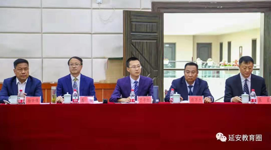 志丹縣委書記李煒致辭。他希望雙方傾心合作,傾情努力,齊心協(xié)力把志丹縣龍崗實驗中學(xué)辦精、辦好、辦出成效。