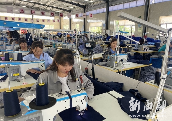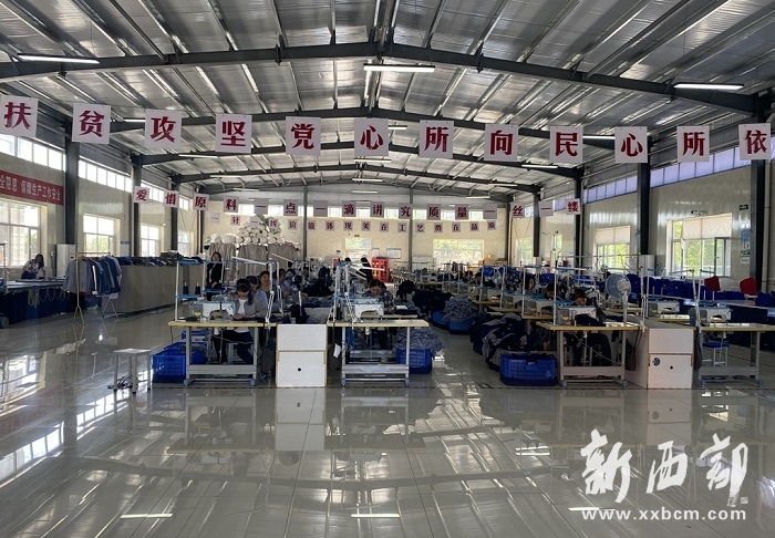 走進(jìn)府谷縣新府山社區(qū)工廠的生產(chǎn)車間,縫紉機(jī)、鎖邊機(jī)、裁剪機(jī)的“噠噠噠”的聲音在廠房中回蕩。