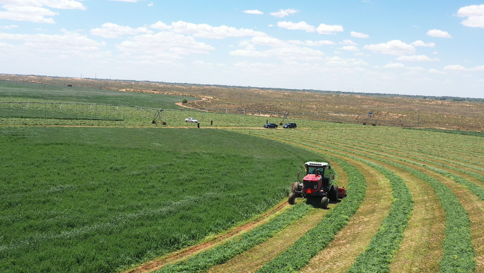 紫花苜蓿產(chǎn)量高、蛋白含量高,被譽(yù)為“牧草之王”,不僅可以促進(jìn)養(yǎng)殖業(yè)發(fā)展,同時(shí)對(duì)改善生態(tài)環(huán)境也起到了積極作用。全區(qū)廣大種植企業(yè)和農(nóng)戶抓住天氣晴好的有利時(shí)機(jī),開足農(nóng)機(jī)馬力,每天在田間作業(yè)十幾個(gè)小時(shí),力爭在苜蓿開花前全部收割完成。