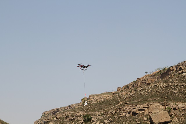 為了解決在沿黃裸露土石山區(qū)植樹運送苗木的困難,府谷縣林業(yè)局今年采取無人機運送樹苗的辦法,提高了造林的工作效率,同時減輕了勞動強度。