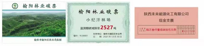 “陜西未來能源化工有限公司是二氧化碳排放大戶,按照國家碳達峰、碳中和的目標,我們在生產(chǎn)的過程中,二氧化碳排放壓力比較大,所以林業(yè)碳匯就成為沖減我公司碳排放量的一個重要方式。此次我們首先購買了榆陽區(qū)小紀汗林場2527噸的碳票,通過購買碳票,我們在實現(xiàn)碳達峰、碳中和目標的道路上邁出了堅實的一步?!标兾魑磥砟茉椿び邢薰军h委副書記、常務副總經(jīng)理馬洪光說。