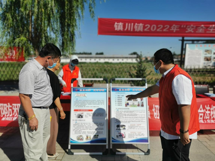新西部網(wǎng)訊(通訊員 王婷)為認真貫徹落實全國第21個“安全生產月”活動精神,牢固樹立安全發(fā)展理念,弘揚生命至上、安全第一的思想,提高全民安全生產意識,6月24日,榆陽區(qū)鎮(zhèn)川鎮(zhèn)人民政府聯(lián)合鎮(zhèn)新時代文明實踐所、派出所、衛(wèi)生院、市場監(jiān)管所、供電所、農商銀行鎮(zhèn)川支行、中燃鎮(zhèn)川運管中心、鎮(zhèn)川小學,并邀請榆陽區(qū)科協(xié)、婦聯(lián)在鎮(zhèn)川鎮(zhèn)中心廣場開展2022年“安全生產月”暨安全生產大宣傳活動。