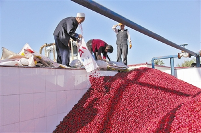 海紅果是國(guó)家地理標(biāo)志產(chǎn)品,府谷海紅果樹面積達(dá)5萬(wàn)畝,年產(chǎn)鮮果4萬(wàn)噸。該縣堅(jiān)定不移走海紅果產(chǎn)業(yè)化路子,以聚金邦農(nóng)產(chǎn)品開發(fā)公司為代表的海紅果深加工產(chǎn)業(yè),建成了全國(guó)標(biāo)準(zhǔn)最高、規(guī)模最大、技術(shù)力量最雄厚的海紅果深加工企業(yè),開發(fā)出了白蘭地、果酒、果醬、濃縮果汁、飲品等20余種海紅果產(chǎn)品,年產(chǎn)各類產(chǎn)品5000多噸,產(chǎn)值達(dá)1億多元,直接帶動(dòng)5000多人就業(yè)。