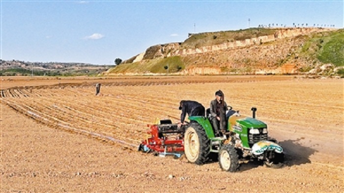 府谷縣地處黃河土石山區(qū),自然條件嚴(yán)酷,生態(tài)環(huán)境脆弱。長(zhǎng)期以來,坡陡溝深的地形地貌,嚴(yán)重制約著府谷縣農(nóng)業(yè)機(jī)械化、現(xiàn)代化的發(fā)展,農(nóng)田棄耕撂荒普遍。