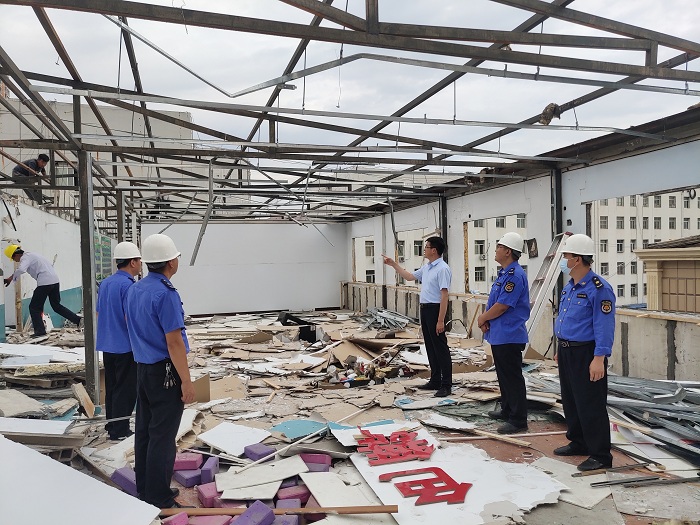 分區(qū)域、有計(jì)劃拆除和清理違建違章構(gòu)筑物。開展安全生產(chǎn)“大起底、大排查、大整治”行動(dòng),對(duì)管轄范圍內(nèi)的所有違法搭建彩鋼房進(jìn)行了全面排查和整治。截至6月底,共拆除三完小步行街樓頂、府州建材市場(chǎng)、森海大酒店對(duì)面等共15處、面積5000余㎡。拆除了頤佳華府東門、府州巷5處外掛樓梯5部。