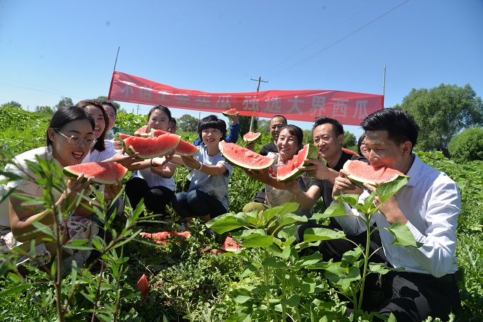 “大界村今年種植了1200多畝西瓜,畝產在1.1萬斤左右,我們這里的西瓜個大、皮薄、瓤紅、口感好,現在西瓜大面積上市,近期雨水多,中間商一再壓價,西瓜不僅價格低,還面臨爛在地里的風險。幸虧宣傳部駐村工作隊第一時間知道這件事,今天這次活動算是給我們大界村所有瓜農解決了大難題,太感謝大家了!”大界村黨支部書記高永強欣喜之情溢于言表。