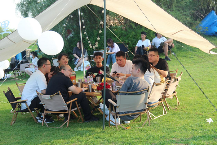 活動現(xiàn)場,彰顯個性的緣分簽名墻、豐富精致的甜點美食、裝扮溫馨的草地天幕、好玩有趣的游戲互動、夕陽下的柔情薩克斯演奏、嘉賓即興情歌助唱、夜幕下的篝火晚會、歡樂放飛轟趴……為青年職工聯(lián)誼活動增添了甜美浪漫快樂的情意。