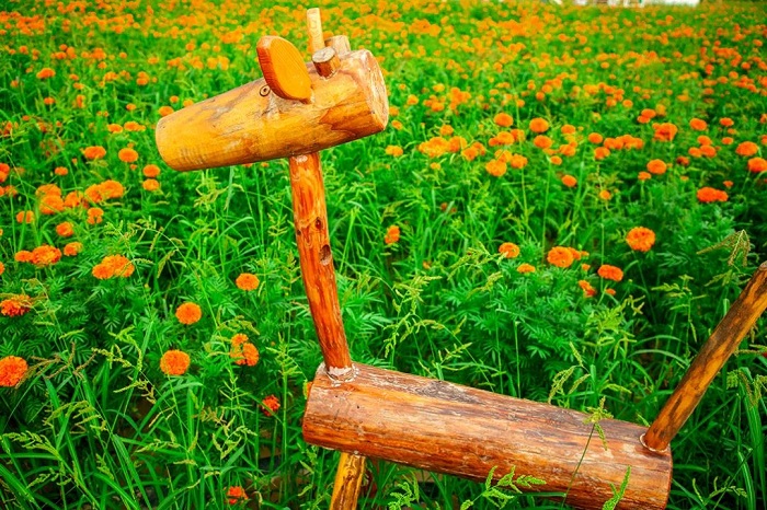 “不是花中偏愛菊,此花開盡更無花?!卑嗽碌南奶焓沁h(yuǎn)道而來的浪漫,奔赴一場和萬壽菊的“黃金之約”。青山迤邐,花香四溢,徜徉在時光深處,頷首回眸間,將一季絢爛的花兒綻放于心田。