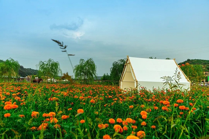 鄭家川棲心川上民宿集群的每個院落都保留了陜北這片黃土地上的特色民居,利用一孔孔傳統(tǒng)的老村莊窯洞,采用“與田園共融,與鄉(xiāng)水互動”的詩意棲居模式,面朝萬壽菊花海,依山而建,拾級而上,整體錯落有致,在保護與傳承的理念上,讓老窯洞煥發(fā)新容顏、新氣質(zhì)。