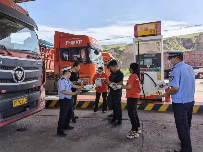 為進(jìn)一步提高廣大駕駛?cè)说慕煌ò踩徒煌ǚㄖ朴^念,增強(qiáng)文明出行和自我保護(hù)意識(shí),近日,府谷縣大昌汗交警中隊(duì)民警走進(jìn)老高川加油站開展交通安全宣傳活動(dòng)。