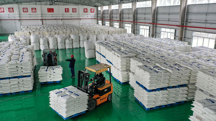 陜西未來能源化工有限公司的員工在搬運高端費托蠟產(chǎn)品