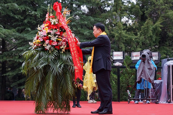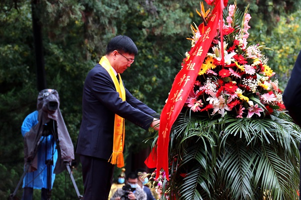 中共陜西省委黃帝陵文化園區(qū)工作委員會書記、陜西省黃帝陵文化園區(qū)管理委員會主任、黃陵縣委書記劉礦平代表中共陜西省委黃帝陵文化園區(qū)工作委員會、陜西省黃帝陵文化園區(qū)管理委員會、中共黃陵縣委敬獻(xiàn)花籃;陜西省僑聯(lián)聯(lián)絡(luò)信息部一級調(diào)研員張國露,阿根廷陜西商會會長劉茜代表海外僑胞敬獻(xiàn)花籃。