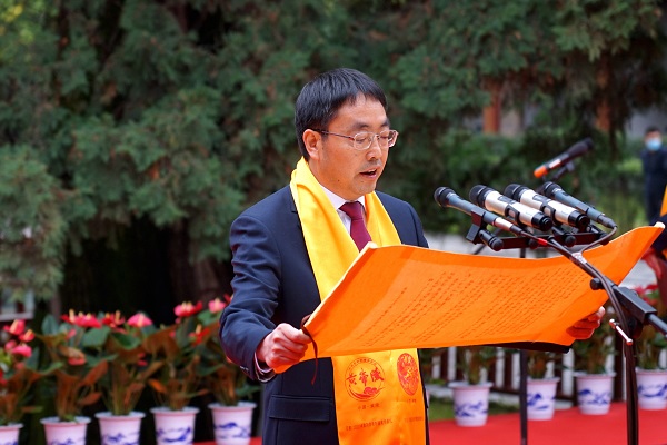 陜西省黃帝陵文化園區(qū)管理委員會副主任、黃陵縣委副書記、政府縣長李建雄開章恭讀祭文。