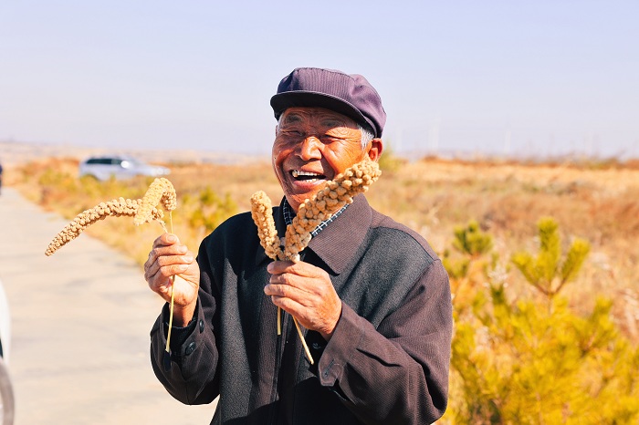 “今年下了大力氣,抓田管、抗病蟲、奪豐收。糜穗壯實,顆粒飽滿,預計畝產近550斤,比去年多150斤,按照黃米市場價5元/斤計算,畝均增收750元。種地十多年,今年畝產最高?!北P算著全年“收入賬”,木瓜鎮(zhèn)常塔村村民張連兵樂開了花。